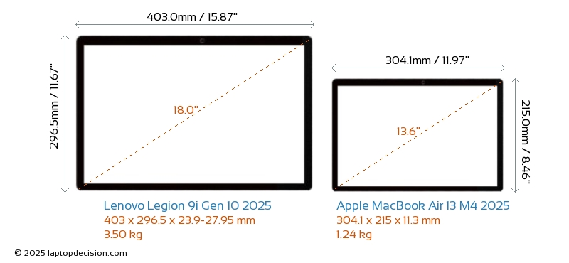 Audio JackBoth Legion 9i Gen 10 2025 and MacBook Air 13 M4 2025 are equipped with a 3.5mm Audio Jack, providing seamless connection to headphones and speakers.