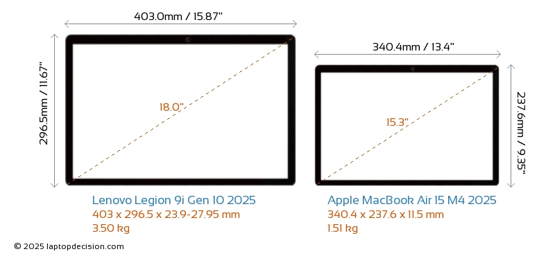 Audio JackBoth Legion 9i Gen 10 2025 and MacBook Air 15 M4 2025 are equipped with a 3.5mm Audio Jack, providing seamless connection to headphones and speakers.