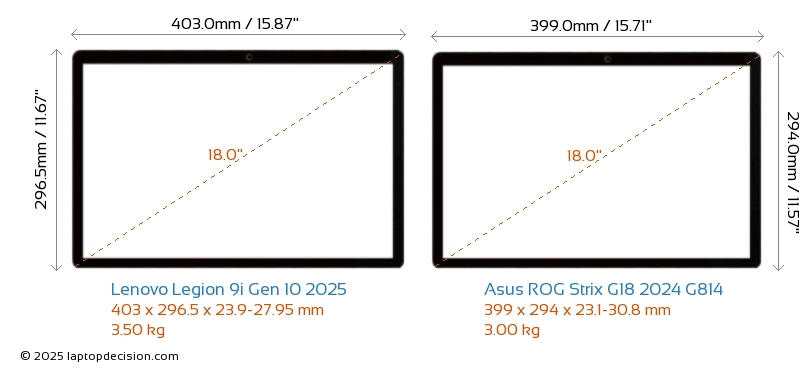 USBBoth Legion 9i Gen 10 2025 and ROG Strix G18 2024 G814 have USB-A ports. Legion 9i Gen 10 2025 has 3x USB 3.2 USB-A ports, while ROG Strix G18 2024 G814 has 2x USB 3.2 USB-A ports.Both Legion 9i Gen 10 2025 and ROG Strix G18 2024 G814 have USB Type-C ports. Legion 9i Gen 10 2025 has 3x USB 4.0 USB Type-C ports, while ROG Strix G18 2024 G814 has 2x USB 3.2 USB Type-C ports.