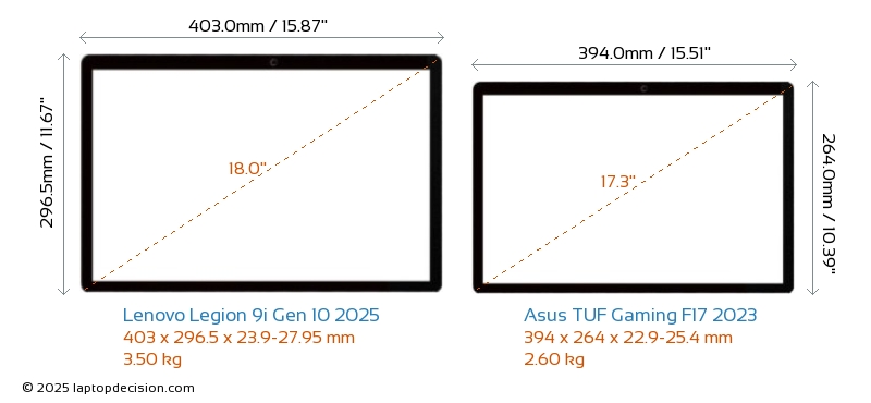 SD Card Reader Legion 9i Gen 10 2025 is equipped with an SD Card Reader for easy access to memory cards. TUF Gaming F17 2023 does not have an SD Card Reader.