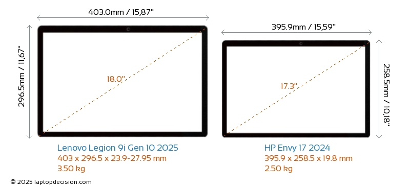 Wifi Both Legion 9i Gen 10 2025 and Envy 17 2024 support the latest Wi-Fi standard v7.