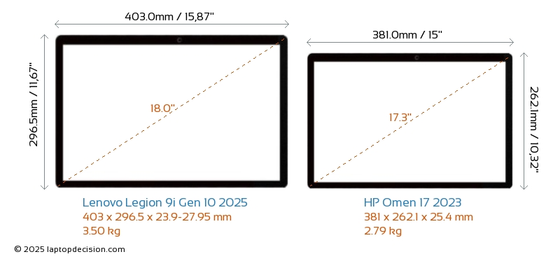 SD Card Reader Legion 9i Gen 10 2025 is equipped with an SD Card Reader for easy access to memory cards. Omen 17 2023 does not have an SD Card Reader.