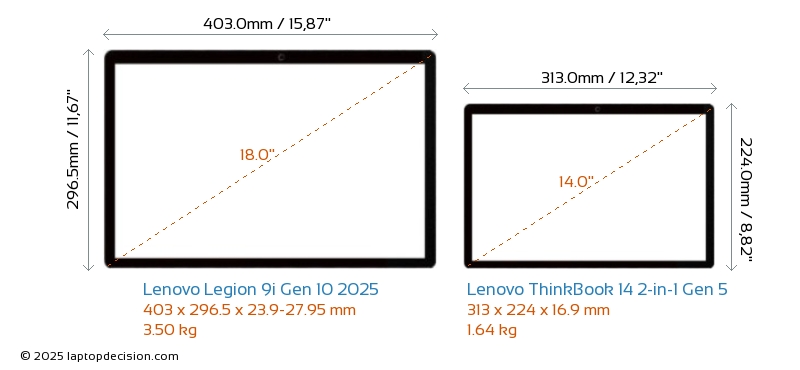 Wifi Legion 9i Gen 10 2025 features a more advanced Wi-Fi standard v7, providing faster and more reliable wireless connections compared to ThinkBook 14 2-in-1 Gen 5 (v6E).