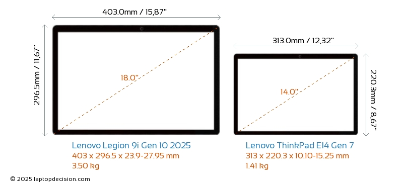 Wifi Legion 9i Gen 10 2025 features a more advanced Wi-Fi standard v7, providing faster and more reliable wireless connections compared to ThinkPad E14 Gen 7 (v6E).