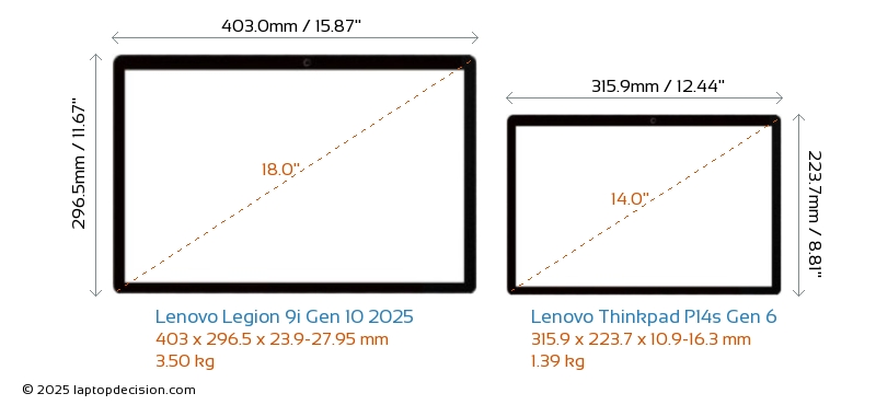 Audio JackBoth Legion 9i Gen 10 2025 and Thinkpad P14s Gen 6 are equipped with a 3.5mm Audio Jack, providing seamless connection to headphones and speakers.