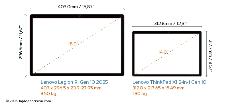 USBBoth Legion 9i Gen 10 2025 and ThinkPad X1 2-in-1 Gen 10 have USB-A ports. Legion 9i Gen 10 2025 has 3x USB 3.2 USB-A ports, while ThinkPad X1 2-in-1 Gen 10 has 2x USB 3.2 USB-A ports.Both Legion 9i Gen 10 2025 and ThinkPad X1 2-in-1 Gen 10 have USB Type-C ports. Legion 9i Gen 10 2025 has 3x USB 4.0 USB Type-C ports, while ThinkPad X1 2-in-1 Gen 10 has 2x USB 4.0 USB Type-C ports.