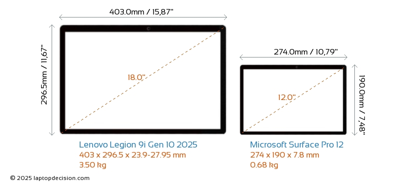 USB Legion 9i Gen 10 2025 is equipped with 3x USB 3.2 USB-A ports. Surface Pro 12 does not have USB-A ports.Both Legion 9i Gen 10 2025 and Surface Pro 12 have USB Type-C ports. Legion 9i Gen 10 2025 has 3x USB 4.0 USB Type-C ports, while Surface Pro 12 has 2x USB 4.0 USB Type-C ports.
