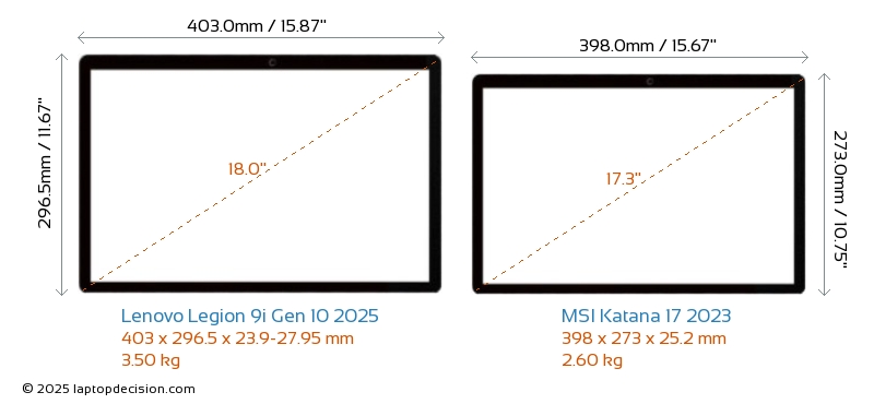 HDMIBoth Legion 9i Gen 10 2025 and Katana 17 2023 feature an HDMI port (1x HDMI 2.1) for connecting to external monitors.