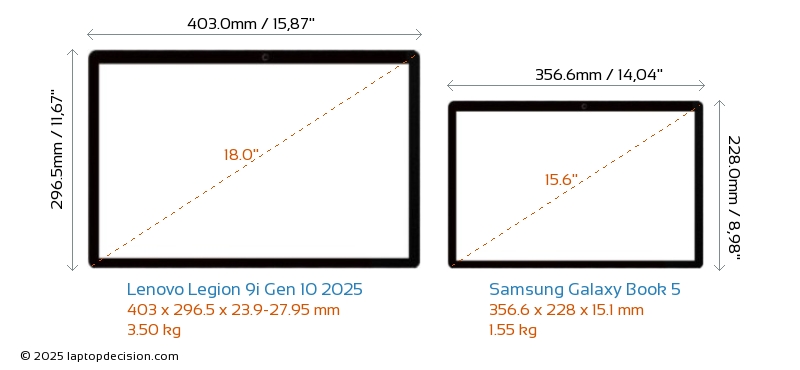 USBBoth Legion 9i Gen 10 2025 and Galaxy Book 5 have USB-A ports. Legion 9i Gen 10 2025 has 3x USB 3.2 USB-A ports, while Galaxy Book 5 has 2x USB 3.2 USB-A ports.Both Legion 9i Gen 10 2025 and Galaxy Book 5 have USB Type-C ports. Legion 9i Gen 10 2025 has 3x USB 4.0 USB Type-C ports, while Galaxy Book 5 has 2x USB 4.0 USB Type-C ports.