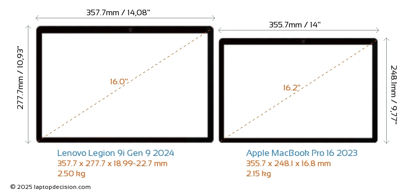 ThunderboltBoth Legion 9i Gen 9 2024 and MacBook Pro 16 2023 are equipped with Thunderbolt 4 ports.