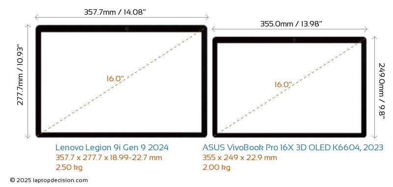 Wifi Legion 9i Gen 9 2024 features a more advanced Wi-Fi standard v7, providing faster and more reliable wireless connections compared to VivoBook Pro 16X 3D OLED K6604, 2023 (v6E).