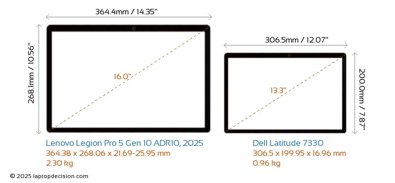 USBBoth Legion Pro 5 Gen 10 ADR10, 2025 and Latitude 7330 have USB-A ports. Legion Pro 5 Gen 10 ADR10, 2025 has 3x USB 3.2 USB-A ports, while Latitude 7330 has 1x USB 3.2 USB-A ports.Both Legion Pro 5 Gen 10 ADR10, 2025 and Latitude 7330 have USB Type-C ports. Legion Pro 5 Gen 10 ADR10, 2025 has 2x USB 4.0 USB Type-C ports, while Latitude 7330 has 2x USB 3.2 USB Type-C ports.