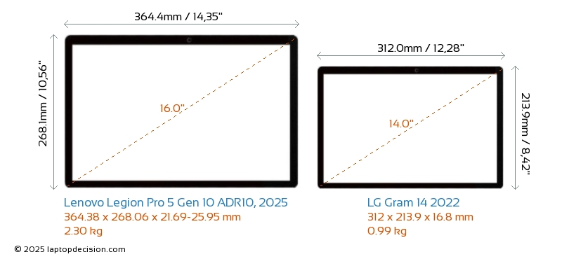 ThunderboltGram 14 2022 is equipped with Thunderbolt 4 port. Legion Pro 5 Gen 10 ADR10, 2025 does not have Thunderbolt port.
