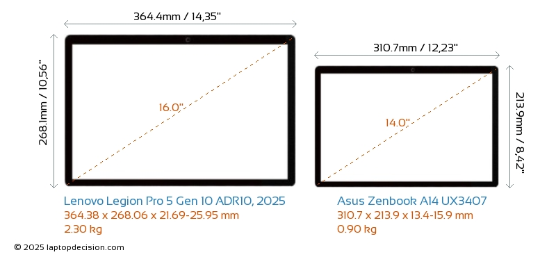 HDMIBoth Legion Pro 5 Gen 10 ADR10, 2025 and Zenbook A14 UX3407 feature an HDMI port (1x HDMI 2.1) for connecting to external monitors.