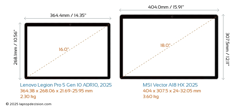 Thunderbolt Vector A18 HX 2025 is equipped with Thunderbolt 4 port. Legion Pro 5 Gen 10 ADR10, 2025 does not have Thunderbolt port.