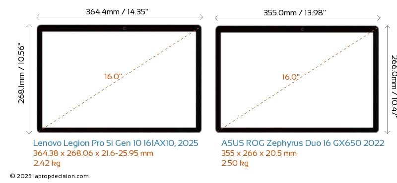 ThunderboltBoth Legion Pro 5i Gen 10 16IAX10, 2025 and ROG Zephyrus Duo 16 GX650 2022 are equipped with Thunderbolt 4 ports.