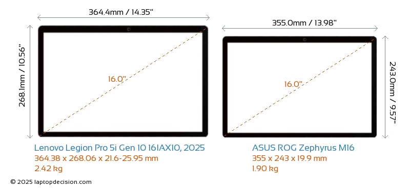 HDMIBoth Legion Pro 5i Gen 10 16IAX10, 2025 and ROG Zephyrus M16 feature an HDMI port. Legion Pro 5i Gen 10 16IAX10, 2025 offers 1x HDMI 2.1, while ROG Zephyrus M16 offers 1x HDMI 2.0.