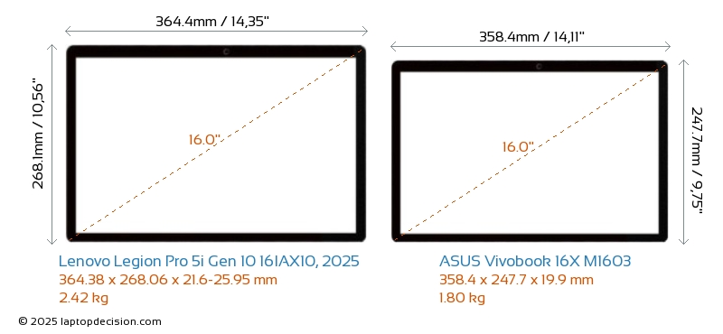 Wifi Legion Pro 5i Gen 10 16IAX10, 2025 features a more advanced Wi-Fi standard v7, providing faster and more reliable wireless connections compared to Vivobook 16X M1603 (v6).
