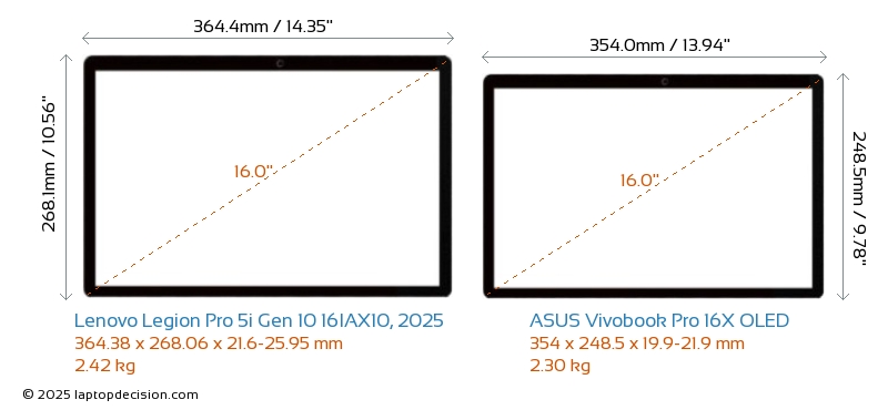 ThunderboltBoth Legion Pro 5i Gen 10 16IAX10, 2025 and Vivobook Pro 16X OLED are equipped with Thunderbolt 4 ports.