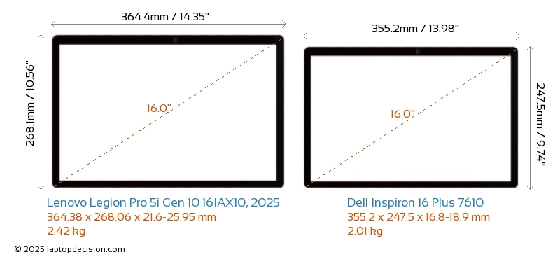 Wifi Legion Pro 5i Gen 10 16IAX10, 2025 features a more advanced Wi-Fi standard v7, providing faster and more reliable wireless connections compared to Inspiron 16 Plus 7610 (v6).