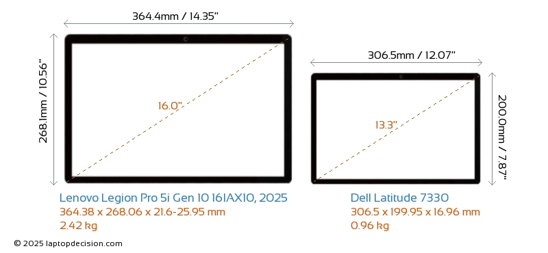 USBBoth Legion Pro 5i Gen 10 16IAX10, 2025 and Latitude 7330 have USB-A ports. Legion Pro 5i Gen 10 16IAX10, 2025 has 3x USB 3.2 USB-A ports, while Latitude 7330 has 1x USB 3.2 USB-A ports.Both Legion Pro 5i Gen 10 16IAX10, 2025 and Latitude 7330 have USB Type-C ports. Legion Pro 5i Gen 10 16IAX10, 2025 has 2x USB 4.0 USB Type-C ports, while Latitude 7330 has 2x USB 3.2 USB Type-C ports.