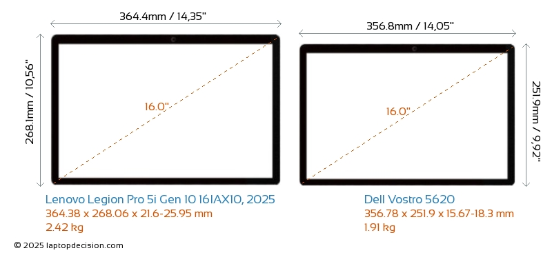 Audio JackBoth Legion Pro 5i Gen 10 16IAX10, 2025 and Vostro 5620 are equipped with a 3.5mm Audio Jack, providing seamless connection to headphones and speakers.