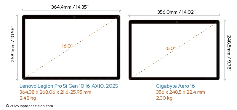 HDMI Legion Pro 5i Gen 10 16IAX10, 2025 features an HDMI port (1x HDMI 2.1) for connecting to external monitors. Aero 16 does not have an HDMI port.