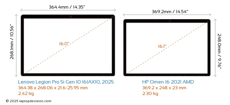 Wifi Legion Pro 5i Gen 10 16IAX10, 2025 features a more advanced Wi-Fi standard v7, providing faster and more reliable wireless connections compared to Omen 16 2021 AMD (v6).