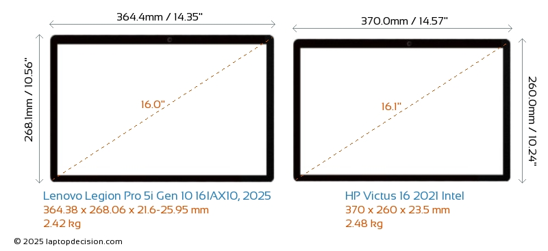 Wifi Legion Pro 5i Gen 10 16IAX10, 2025 features a more advanced Wi-Fi standard v7, providing faster and more reliable wireless connections compared to Victus 16 2021 Intel (v6).