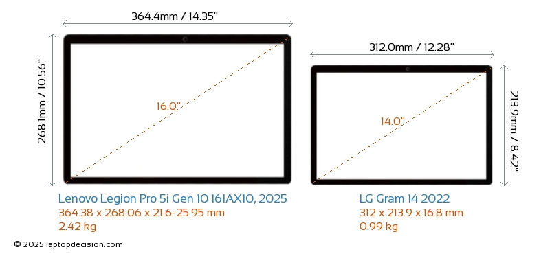 HDMIBoth Legion Pro 5i Gen 10 16IAX10, 2025 and Gram 14 2022 feature an HDMI port. Legion Pro 5i Gen 10 16IAX10, 2025 offers 1x HDMI 2.1, while Gram 14 2022 offers 1x HDMI 2.0.