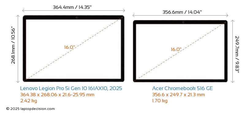 USBBoth Legion Pro 5i Gen 10 16IAX10, 2025 and Chromebook 516 GE have USB-A ports. Legion Pro 5i Gen 10 16IAX10, 2025 has 3x USB 3.2 USB-A ports, while Chromebook 516 GE has 1x USB 3.2 USB-A ports.Both Legion Pro 5i Gen 10 16IAX10, 2025 and Chromebook 516 GE have USB Type-C ports. Legion Pro 5i Gen 10 16IAX10, 2025 has 2x USB 4.0 USB Type-C ports, while Chromebook 516 GE has 2x USB 3.2 USB Type-C ports.