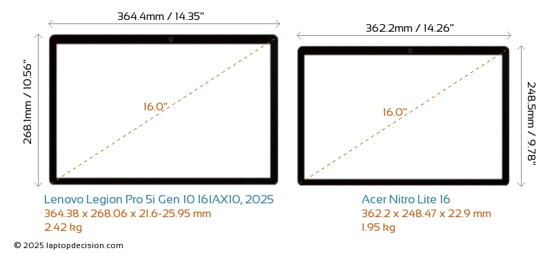 USBBoth Legion Pro 5i Gen 10 16IAX10, 2025 and Nitro Lite 16 have USB-A ports. Legion Pro 5i Gen 10 16IAX10, 2025 has 3x USB 3.2 USB-A ports, while Nitro Lite 16 has 2x USB 3.2 USB-A ports.Both Legion Pro 5i Gen 10 16IAX10, 2025 and Nitro Lite 16 have USB Type-C ports. Legion Pro 5i Gen 10 16IAX10, 2025 has 2x USB 4.0 USB Type-C ports, while Nitro Lite 16 has 1x USB 4.0 USB Type-C ports.