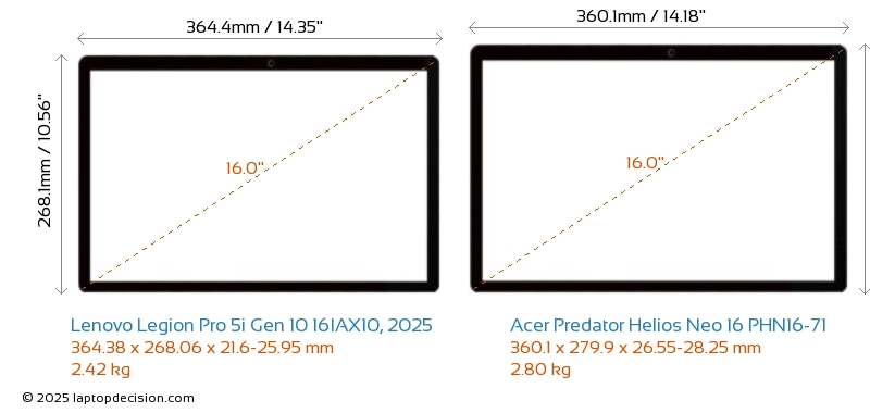 HDMIBoth Legion Pro 5i Gen 10 16IAX10, 2025 and Predator Helios Neo 16 PHN16-71 feature an HDMI port (1x HDMI 2.1) for connecting to external monitors.
