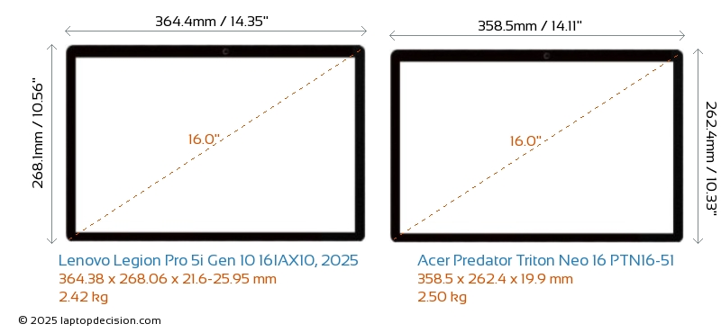 ThunderboltBoth Legion Pro 5i Gen 10 16IAX10, 2025 and Predator Triton Neo 16 PTN16-51 are equipped with Thunderbolt 4 ports.