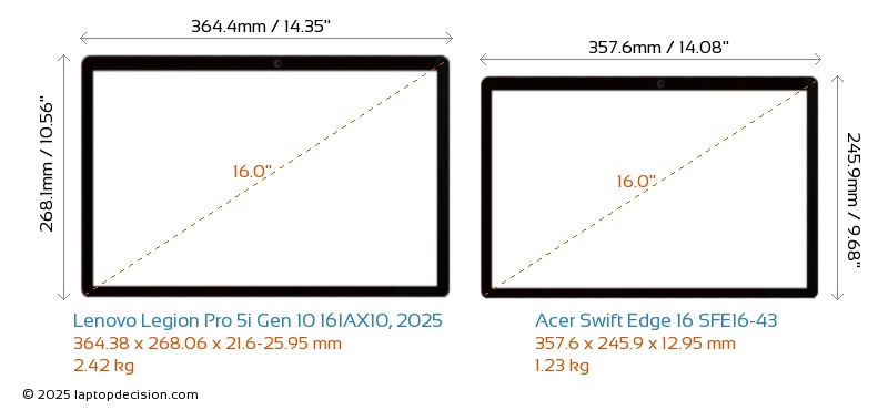 Thunderbolt Legion Pro 5i Gen 10 16IAX10, 2025 is equipped with Thunderbolt 4 port. Swift Edge 16 SFE16-43 does not have Thunderbolt port.