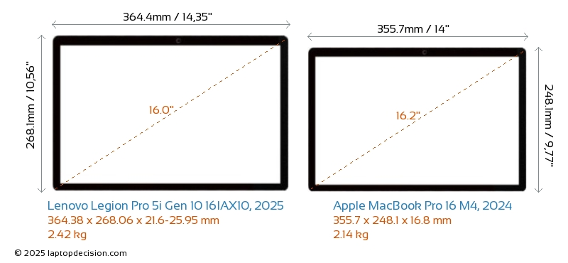 Lenovo Legion Pro 5i Gen 10 16IAX10, 2025 vs Apple MacBook Pro 16 M4, 2024 Comparison