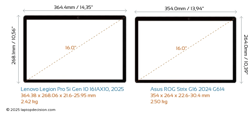 ThunderboltBoth Legion Pro 5i Gen 10 16IAX10, 2025 and ROG Strix G16 2024 G614 are equipped with Thunderbolt 4 ports.