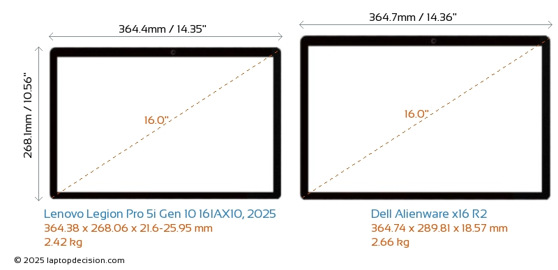 HDMIBoth Legion Pro 5i Gen 10 16IAX10, 2025 and Alienware x16 R2 feature an HDMI port (1x HDMI 2.1) for connecting to external monitors.