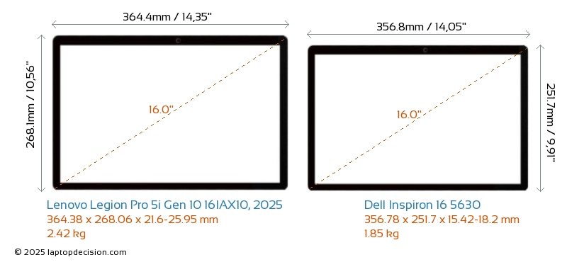 SD Card Reader Inspiron 16 5630 is equipped with an SD Card Reader for easy access to memory cards. Legion Pro 5i Gen 10 16IAX10, 2025 does not have an SD Card Reader.
