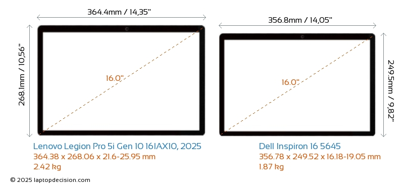 Audio JackBoth Legion Pro 5i Gen 10 16IAX10, 2025 and Inspiron 16 5645 are equipped with a 3.5mm Audio Jack, providing seamless connection to headphones and speakers.
