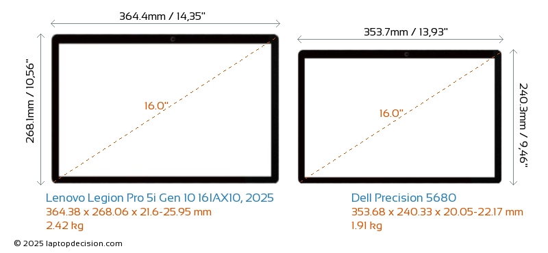 ThunderboltBoth Legion Pro 5i Gen 10 16IAX10, 2025 and Precision 5680 are equipped with Thunderbolt 4 ports.