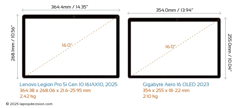 ThunderboltBoth Legion Pro 5i Gen 10 16IAX10, 2025 and Aero 16 OLED 2023 are equipped with Thunderbolt 4 ports.