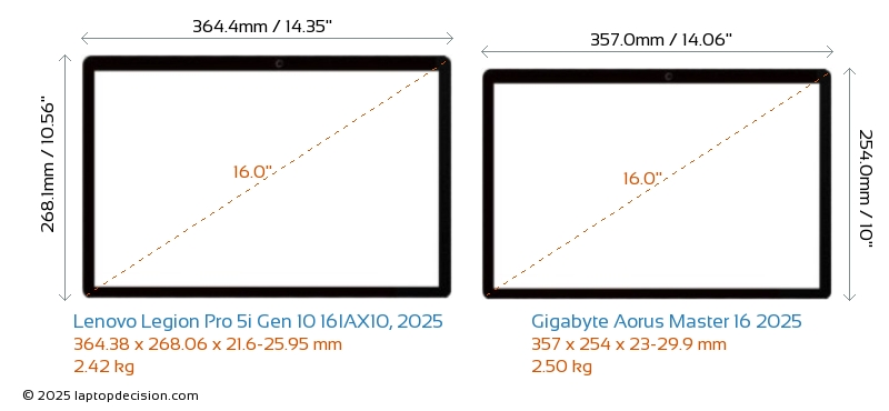 SD Card Reader Aorus Master 16 2025 is equipped with an SD Card Reader for easy access to memory cards. Legion Pro 5i Gen 10 16IAX10, 2025 does not have an SD Card Reader.