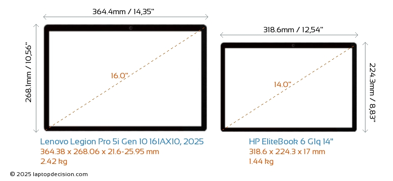 Thunderbolt Legion Pro 5i Gen 10 16IAX10, 2025 is equipped with Thunderbolt 4 port. EliteBook 6 G1q 14" does not have Thunderbolt port.
