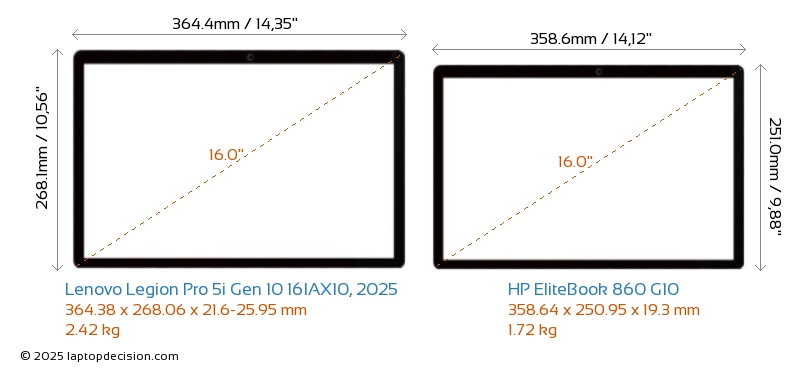 ThunderboltBoth Legion Pro 5i Gen 10 16IAX10, 2025 and EliteBook 860 G10 are equipped with Thunderbolt 4 ports.