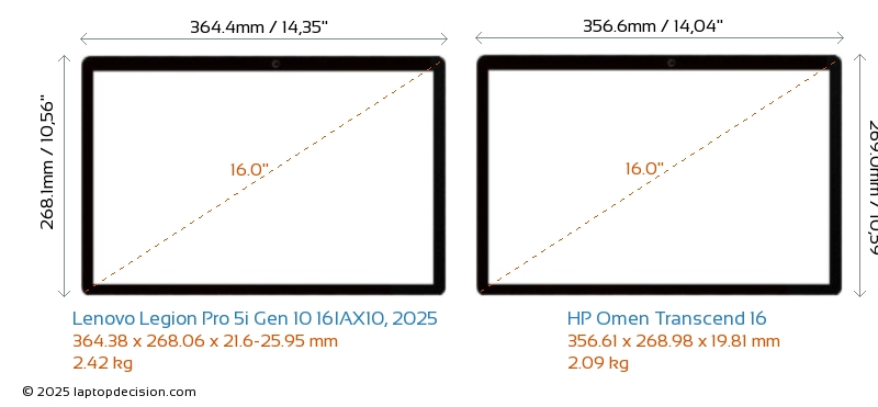 HDMIBoth Legion Pro 5i Gen 10 16IAX10, 2025 and Omen Transcend 16 feature an HDMI port (1x HDMI 2.1) for connecting to external monitors.