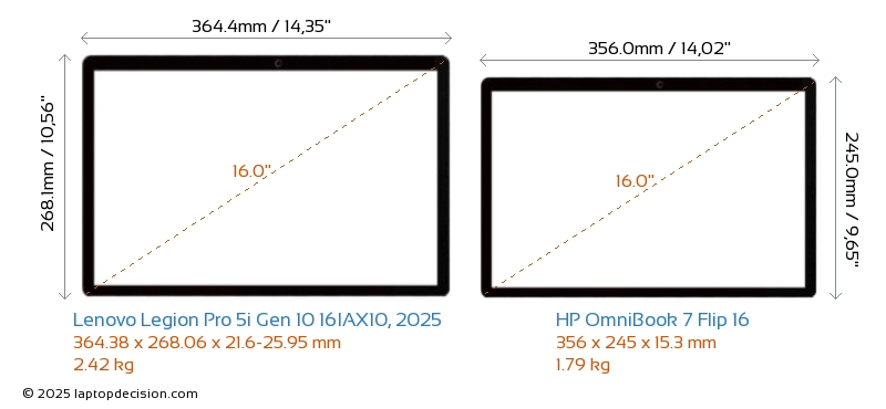 Audio JackBoth Legion Pro 5i Gen 10 16IAX10, 2025 and OmniBook 7 Flip 16 are equipped with a 3.5mm Audio Jack, providing seamless connection to headphones and speakers.