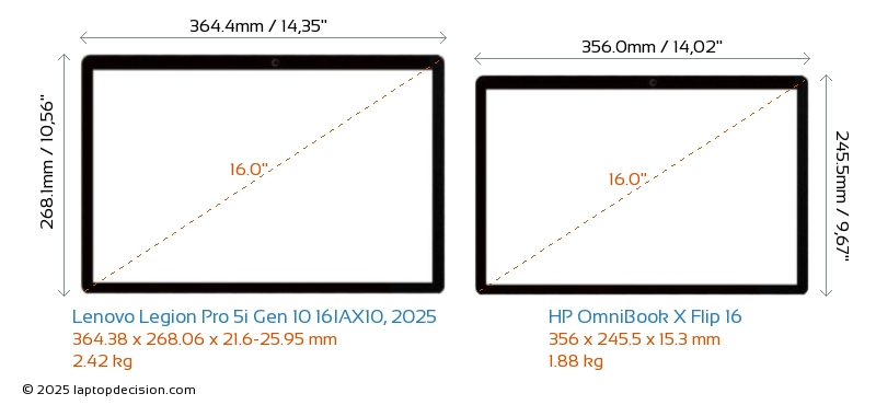 Audio JackBoth Legion Pro 5i Gen 10 16IAX10, 2025 and OmniBook X Flip 16 are equipped with a 3.5mm Audio Jack, providing seamless connection to headphones and speakers.