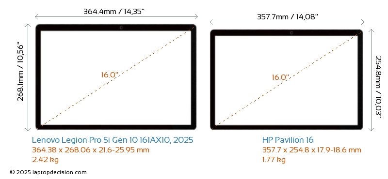 USBBoth Legion Pro 5i Gen 10 16IAX10, 2025 and Pavilion 16 have USB-A ports. Legion Pro 5i Gen 10 16IAX10, 2025 has 3x USB 3.2 USB-A ports, while Pavilion 16 has 2x USB 3.2 USB-A ports.Both Legion Pro 5i Gen 10 16IAX10, 2025 and Pavilion 16 have USB Type-C ports. Legion Pro 5i Gen 10 16IAX10, 2025 has 2x USB 4.0 USB Type-C ports, while Pavilion 16 has 2x USB 3.2 USB Type-C ports.