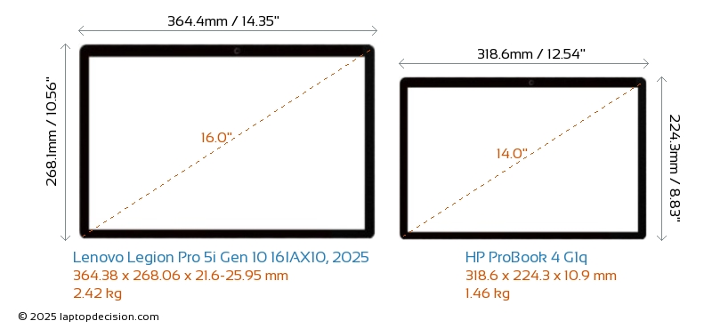 USBBoth Legion Pro 5i Gen 10 16IAX10, 2025 and ProBook 4 G1q have USB-A ports. Legion Pro 5i Gen 10 16IAX10, 2025 has 3x USB 3.2 USB-A ports, while ProBook 4 G1q has 2x USB 3.2 USB-A ports.Both Legion Pro 5i Gen 10 16IAX10, 2025 and ProBook 4 G1q have USB Type-C ports. Legion Pro 5i Gen 10 16IAX10, 2025 has 2x USB 4.0 USB Type-C ports, while ProBook 4 G1q has 2x USB 3.2 USB Type-C ports.